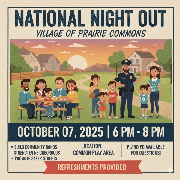 We are open to any suggestions that can help make this celebration a positive experience for everyone. Please feel free to contact us at Villages of Prairie Commons HOA, Homeowners Association, City of Plano, Texas, HOA under the “Contact US” page.